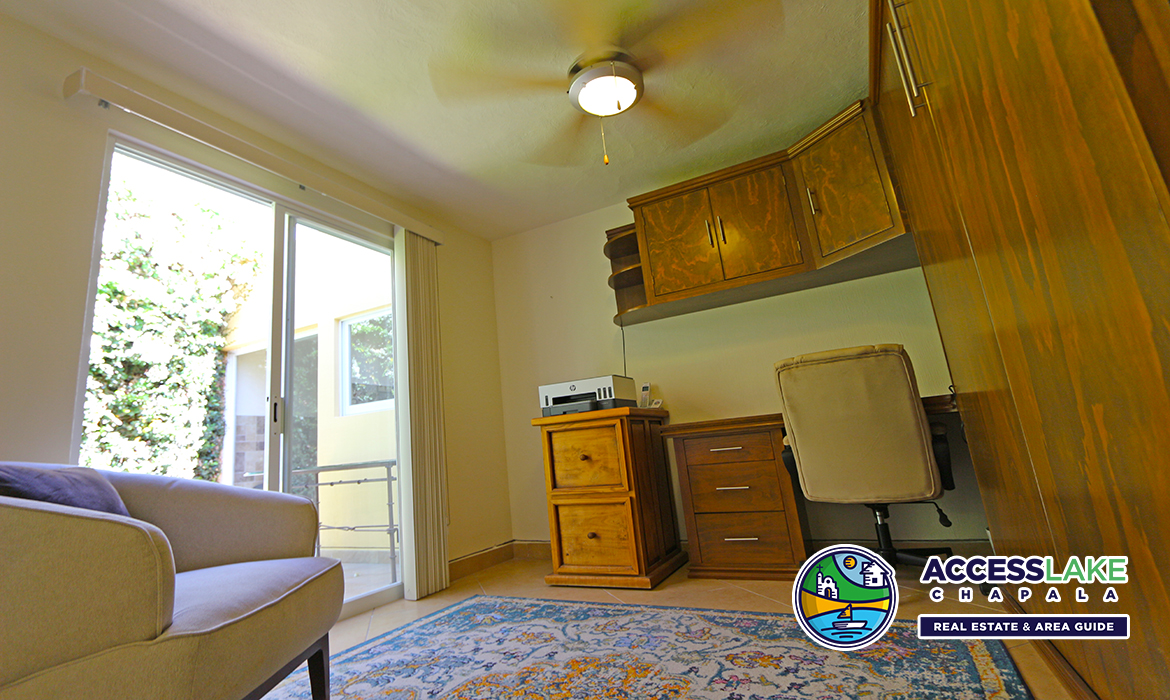La recámara principal tiene baño en suite y vestidores tipo walk-in. En toda la casa, cada recámara, incluyendo el estudio, tiene acceso a un patio. El comedor y la cocina se abren hacia una terraza techada, brindando una agradable sensación de espacio abierto. El estudio/oficina cuenta con una cama abatible (tipo Murphy) hecha a la medida, que también podría utilizarse como una tercera recámara.