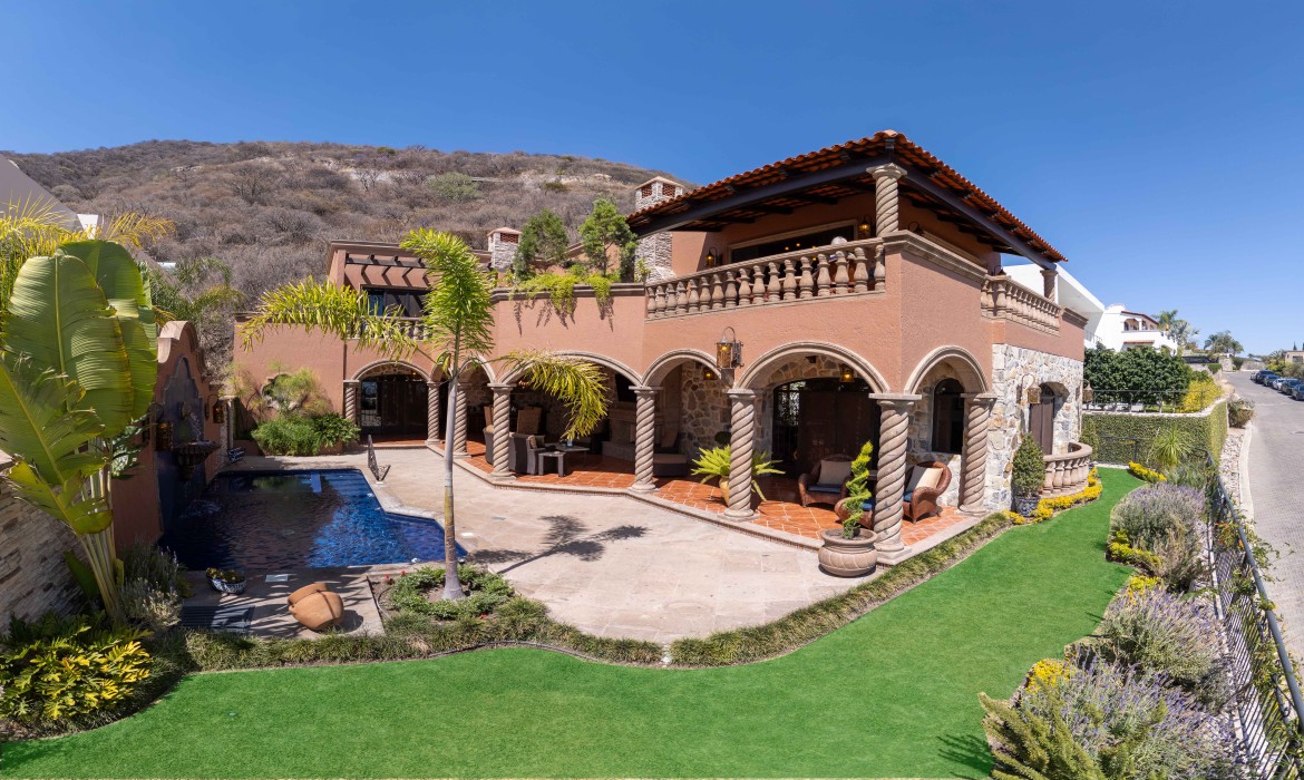 Perched to capture stunning lake views, this exquisite Tuscan-style residence is a true blend of timeless elegance and rustic charm. Rich in character, the home showcases beautiful handcrafted ironwork and warm cantera stone details that create an inviting and sophisticated atmosphere throughout.