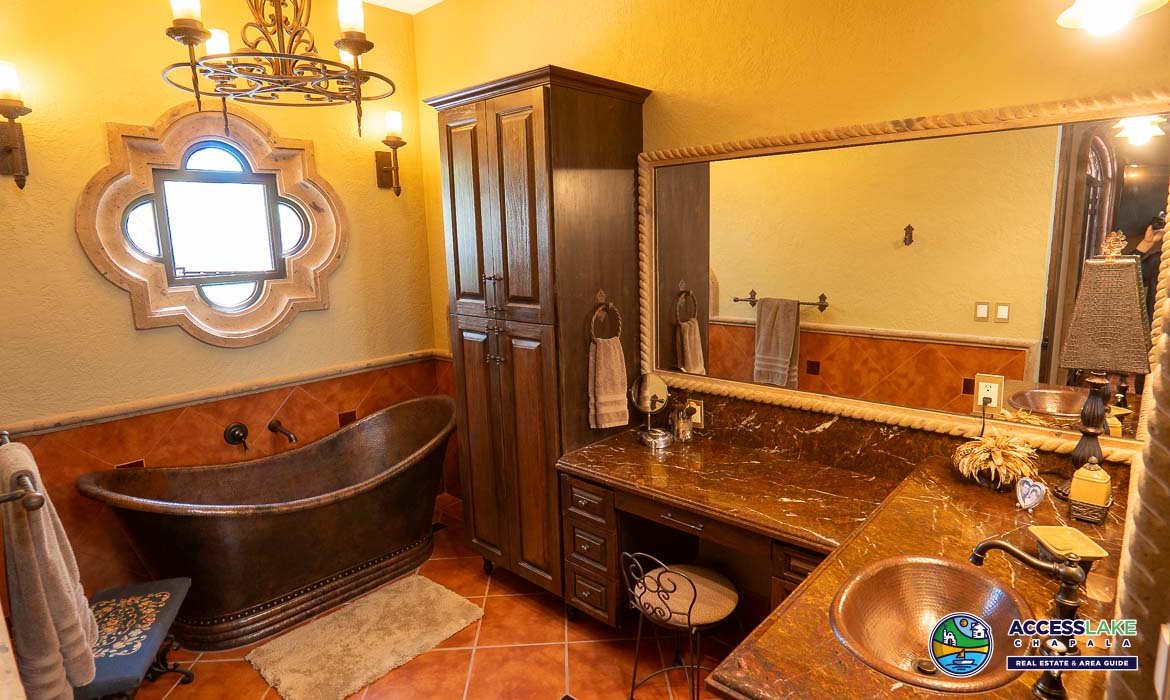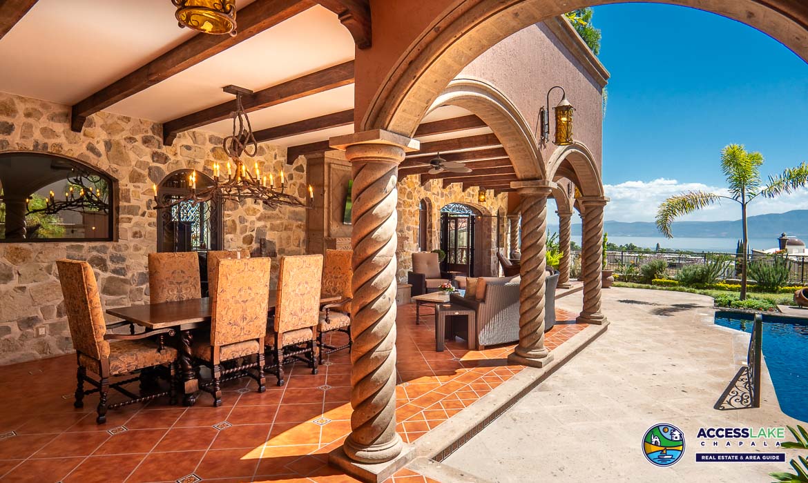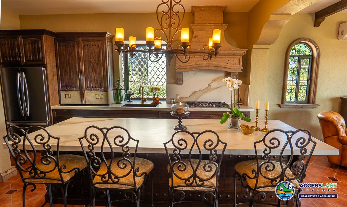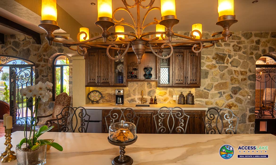 Perched to capture stunning lake views, this exquisite Tuscan-style residence is a true blend of timeless elegance and rustic charm. Rich in character, the home showcases beautiful handcrafted ironwork and warm cantera stone details that create an inviting and sophisticated atmosphere throughout.